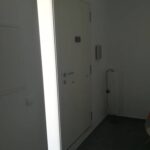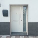 Puerta de entrada a vivienda lacada en blanco THT modelo Acacia Fm con manillon Toledo de 400mm,vierteaguas incorporado,cerradura tres puntos con escudo antitaladro,mirilla interna digital y fijo lateral libre con cristal de seguridad 4+4 laminal blanco/10/4.Todas nuestras puertas se pueden combinar con numerosos paneles diferentes,colores,accesorios,cristales,laterales y dinteles etc,
